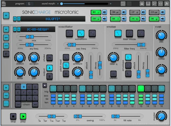 I've started work on a new skin. Aiming for some soft pushbuttons and Oberheim-Sem-ish metal backplate. Still a log way to go, might end up somewhere else..