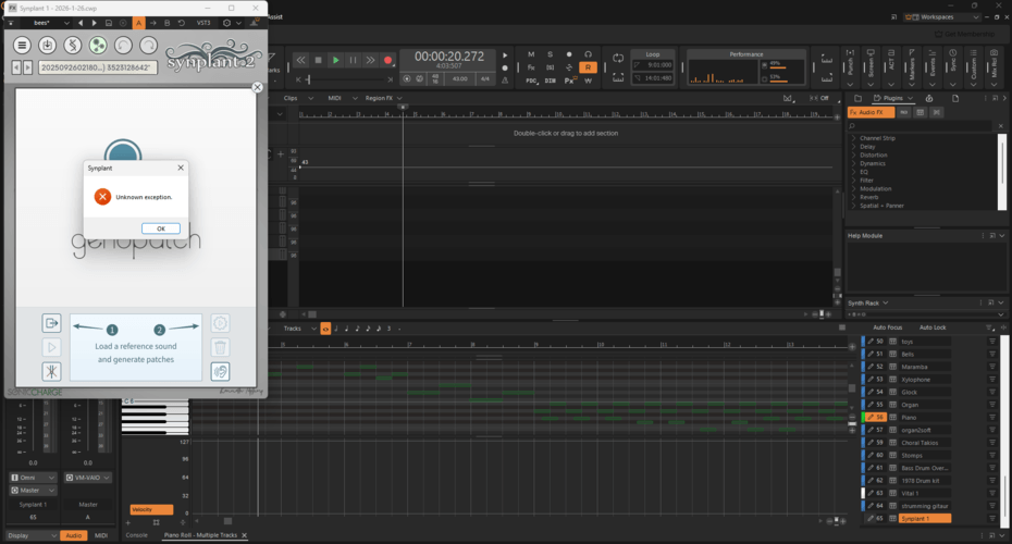 Just to confirm: we are talking about dragging a .wav file from the Windows File Explorer into Genopatch? And the .wav file and all its folders above contain only "western" characters? And when you do this, you get the "Unknown exception" error window?