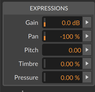 I would like to be able to use the Expressions pane on the left hand side of Bitwig Studio, when editing MIDI, to manipulate the panning of individual MIDI notes.